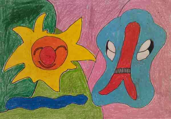 《跳绳》(油画棒)周 女 8岁