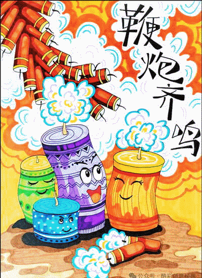 在喜庆的日子里,人们总是喜欢燃放鞭炮庆祝。最开始的鞭炮是竹节,叫”爆竹“,是为了吓走一只叫”年“的怪兽,这只怪兽总是在除夕的时候窜到村里,搅得人们不得安宁,于是人们就燃放竹节吓走它。
